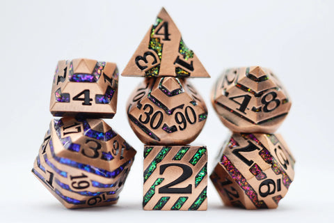 COPPER WITH RAINBOW MICA RPG METAL DICE SET